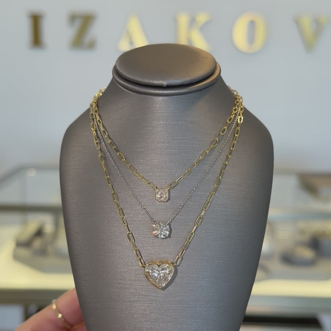 Craft your perfect piece with this 14K gold floating solitaire necklace featuring a premium lab-grown diamond. Select your preferred diamond shape and carat weight, combined with your choice of metal color and chain style. Each diamond is G color or better, VS2 clarity or higher, and includes an IGI certificate, ensuring exceptional quality and ethical excellence in every detail. This customizable necklace offers a sophisticated and responsible way to showcase timeless elegance.
