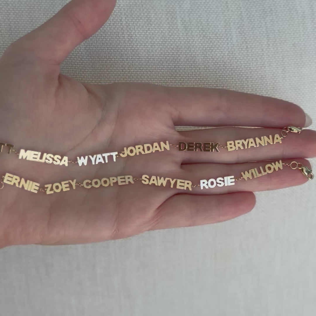 As an industry expert, I offer the 14K Gold Personalized Multiple Block Nameplate Gold Bracelet to elevate your style. Made with 14K gold, this Personalized Multiple Block Nameplate Gold Bracelet features a personalized multiple block nameplate for a unique touch. With its timeless design and expert craftsmanship, this bracelet is a must-have for any fashion enthusiast. Choose how many names you would like your bracelet to have and enter the names in the personalization fields.