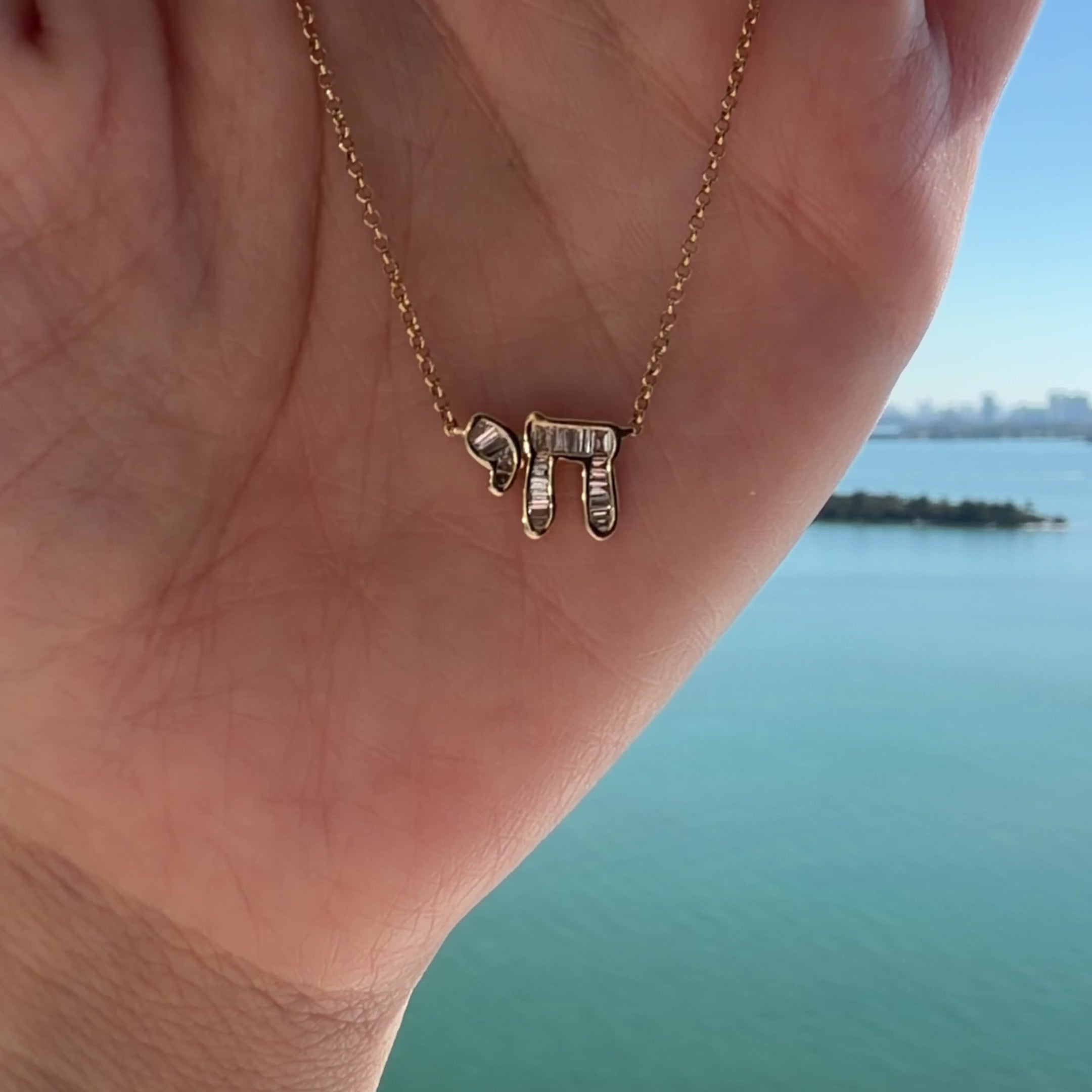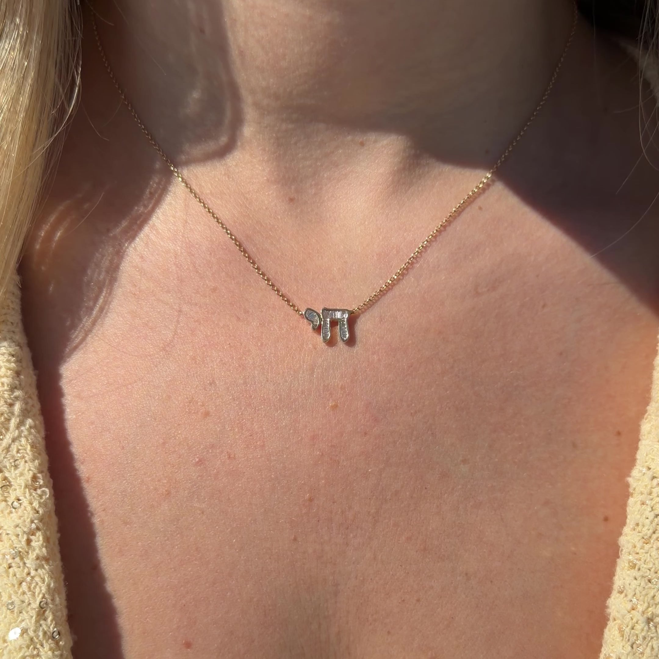 Hebrew Chai Baguette Diamond Necklace