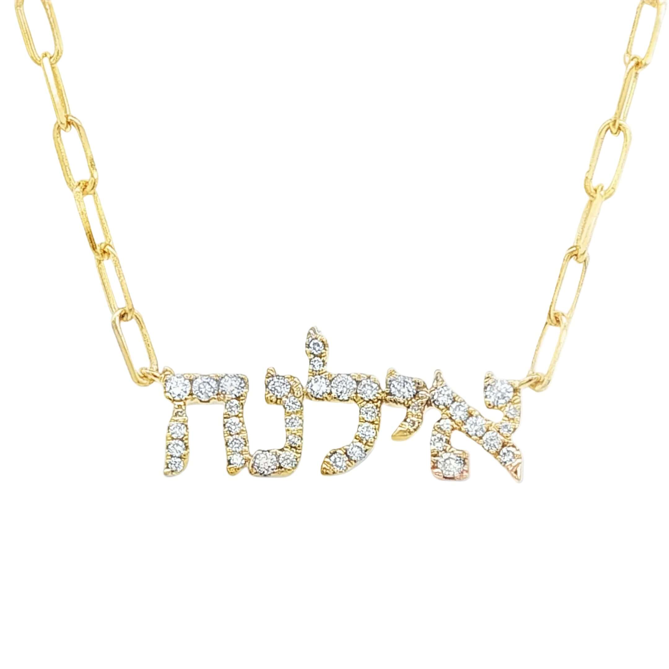 Make an unforgettable statement with this 14K Gold Personalized Hebrew Diamond Nameplate Necklace. Inscribed with your own unique Hebrew name, your necklace radiates power and beauty. Dare to be different and show the world who you are with this personalized piece of jewelry!