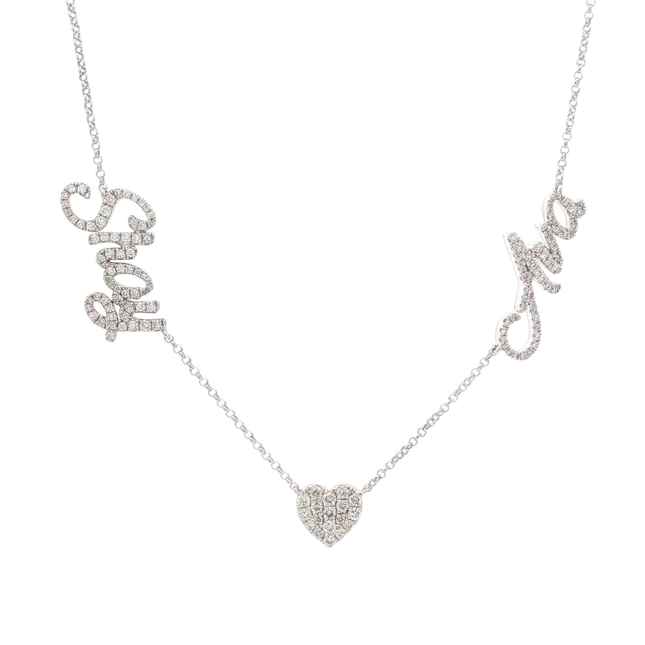 This 14K Gold Necklace offers personalization with multiple nameplates, 8 unique script fonts, and a center heart set with micro pave diamonds. Make a statement with elegance and style while showcasing your individuality.