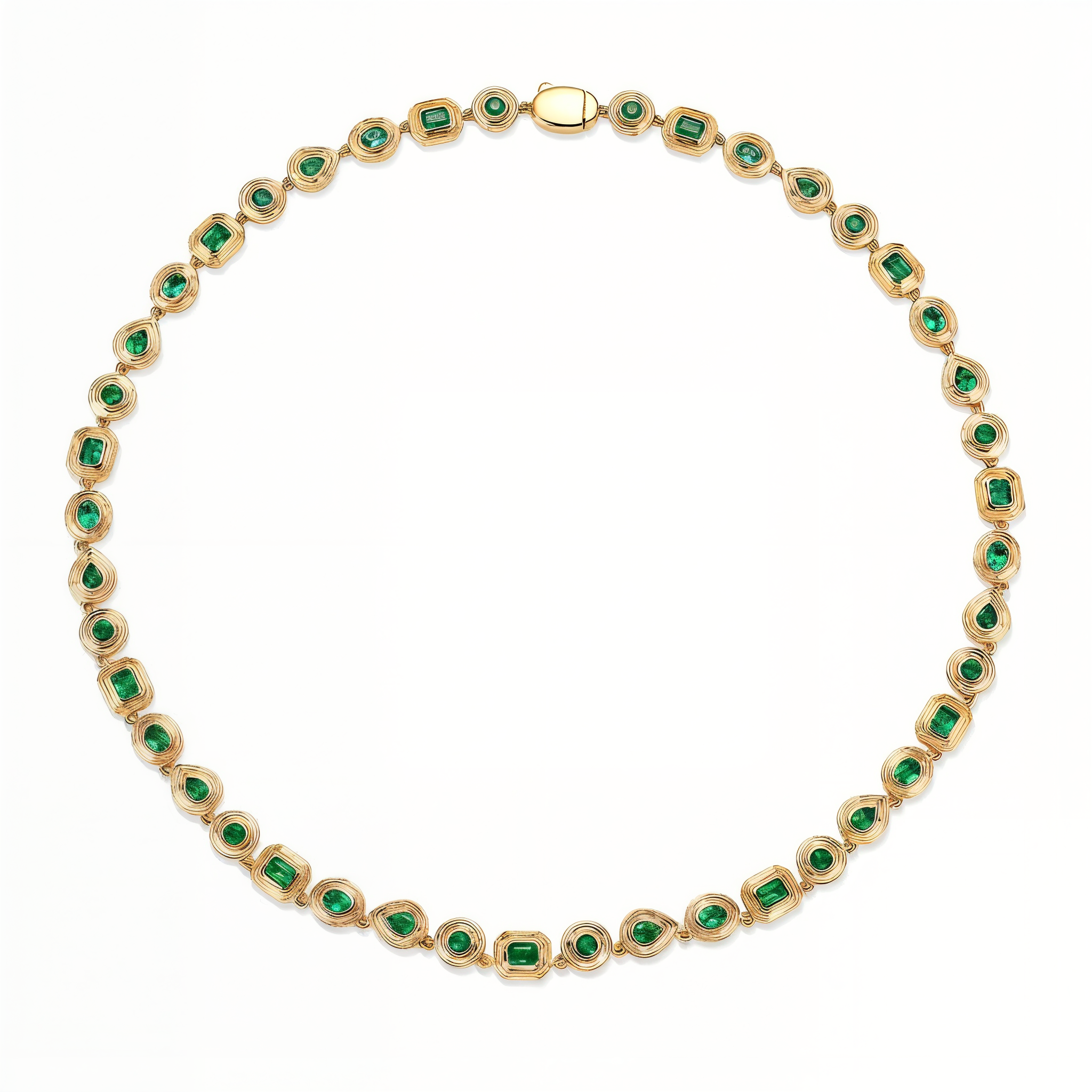 Multi-Shape Emerald Ripple Bezel Tennis Necklace