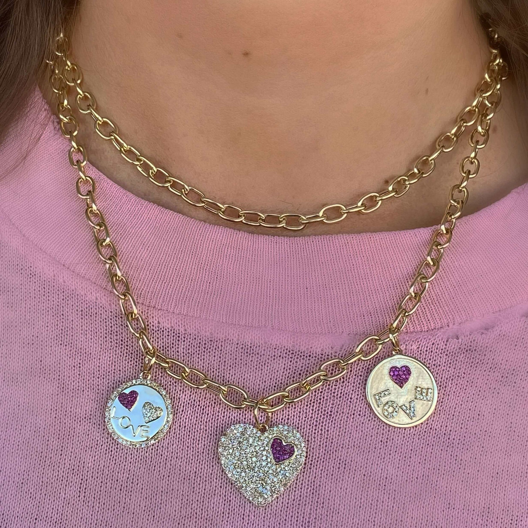 Gemstone Compass Coin Diamond Necklace Charm