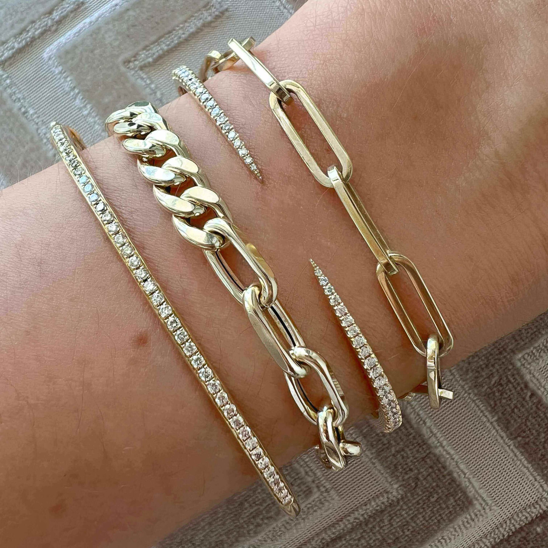 Our Italian made solid paper clip link chain bracelet comes in a medium and large size, and is a great option if you want our most popular chain in the solid version. A must have item!